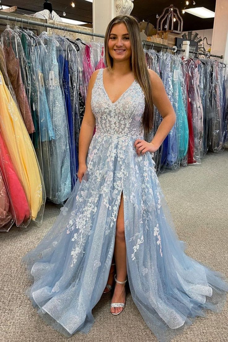 Long tulle/lace dress with slit