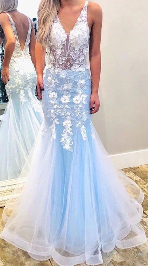 Mermaid Long Prom Dresses with Appliques and Beading,Formal Dresses,Charming Dance Dress