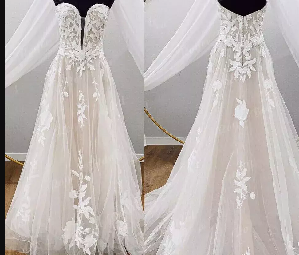 Strapless A-line Wedding Dresses,Custom Made Bridal Dress DTB120