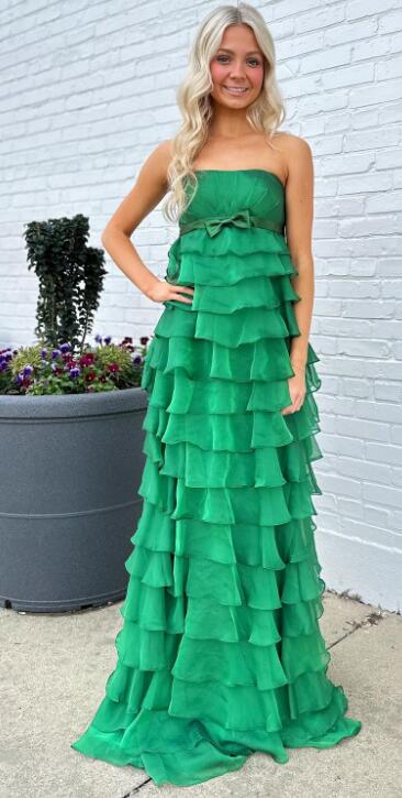 Strapless Chiffon Long Prom Dress with Ruffle Skirt