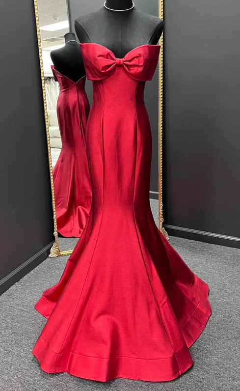 Strapless Red Mermaid Long Prom Dresses with Bow on Bodice